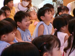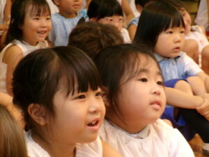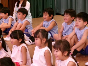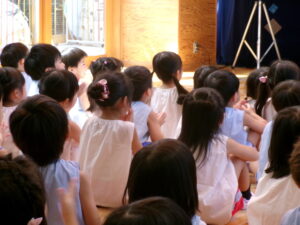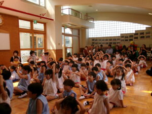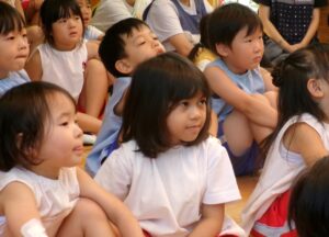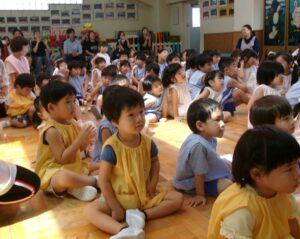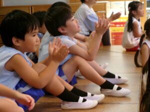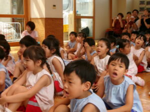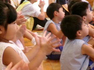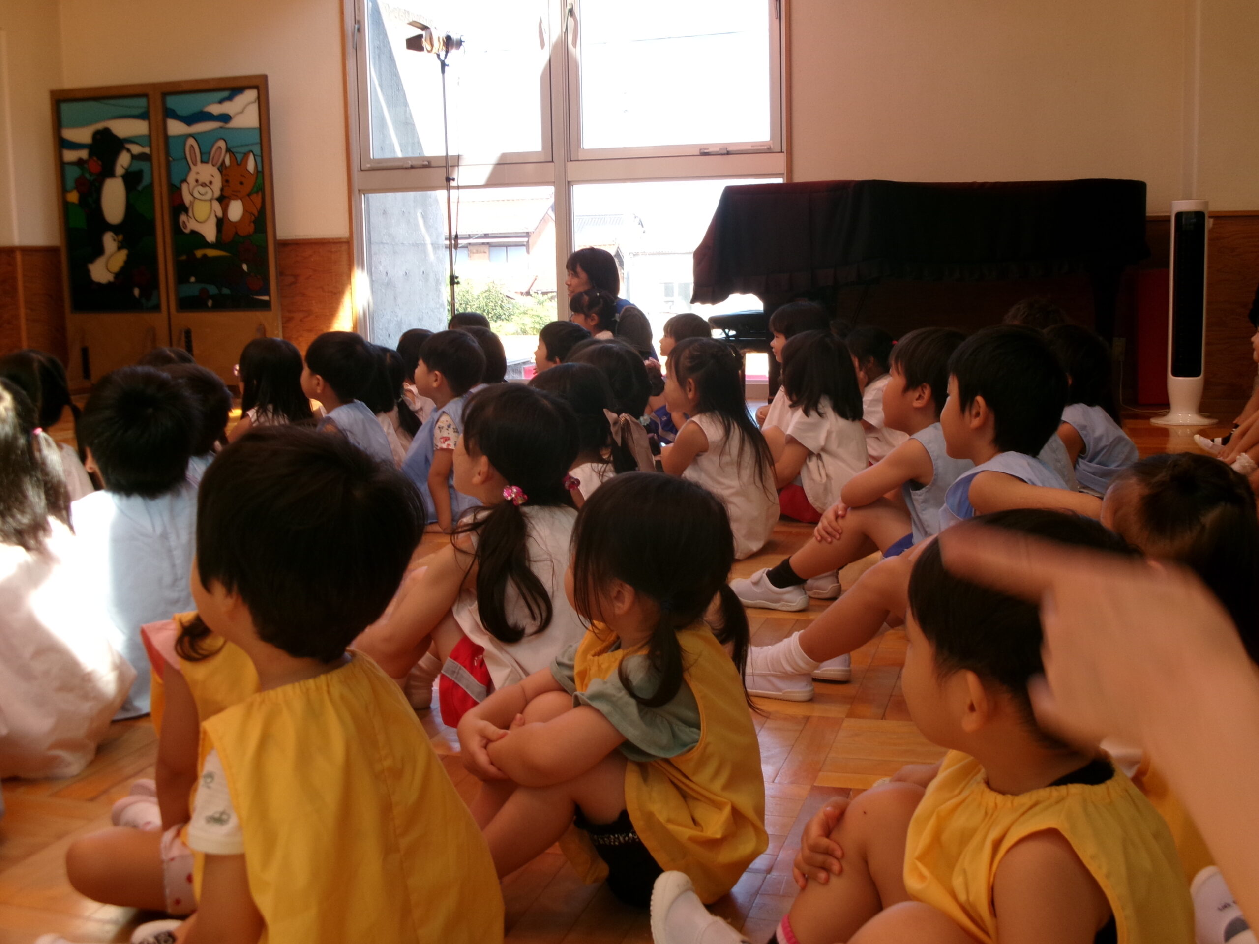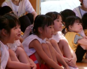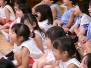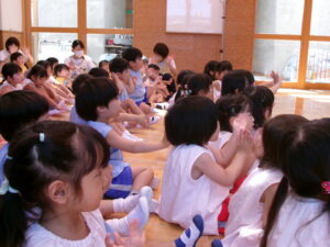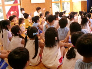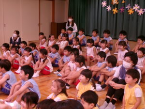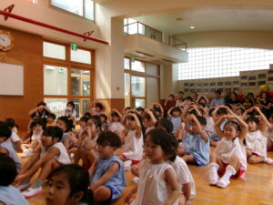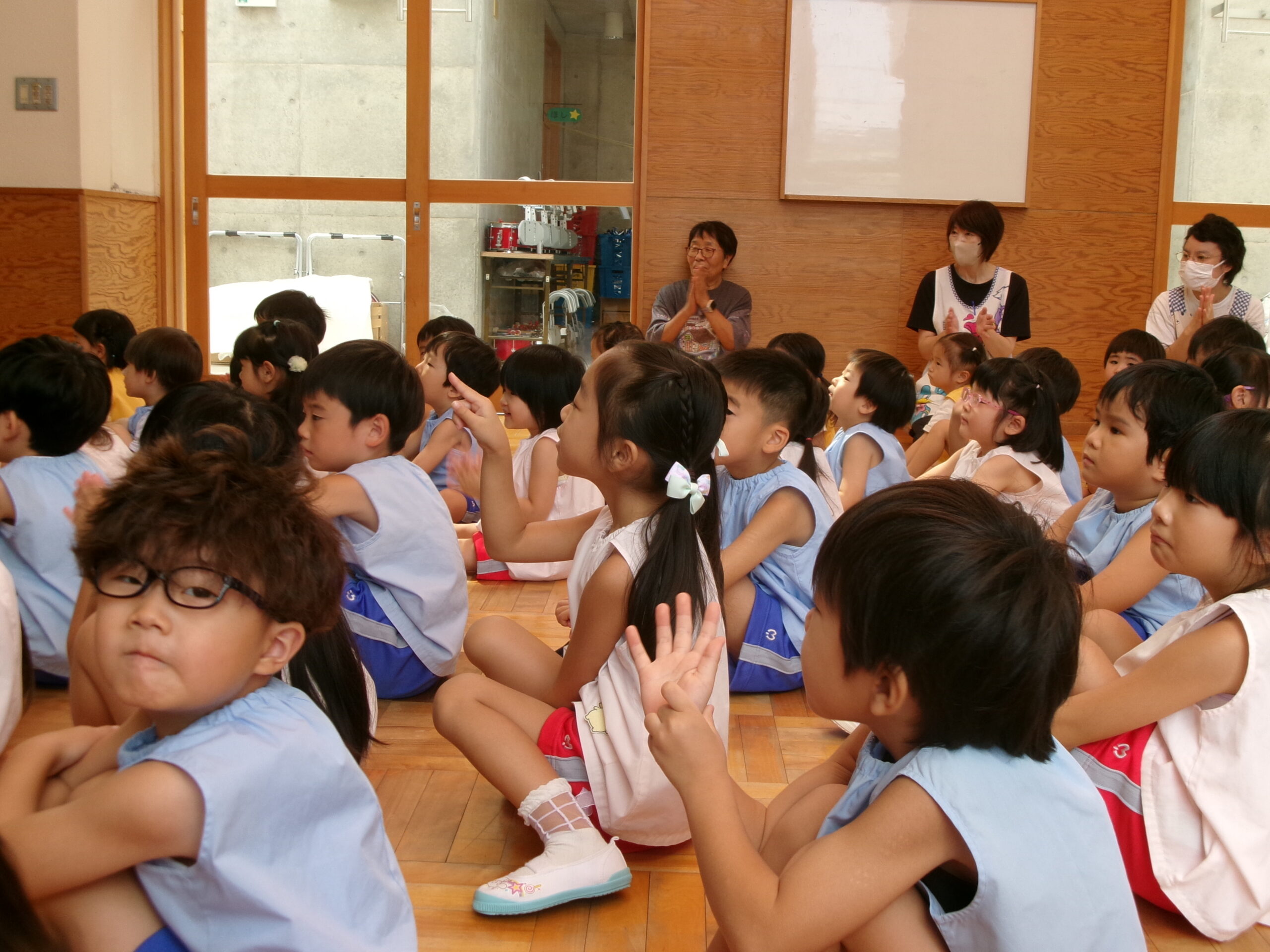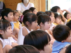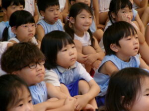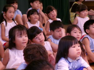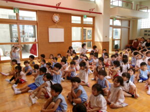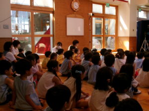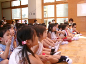 先生からおはなしを聞いているのは