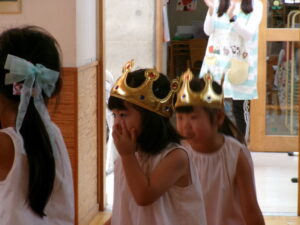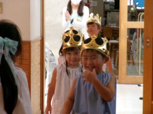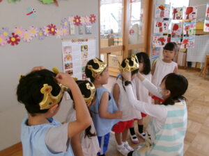 キラキラのかんむりを被って準備中~♪