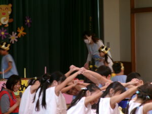 年長さんのアーチをくぐります(*^-^*)