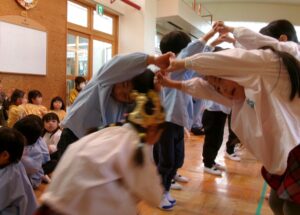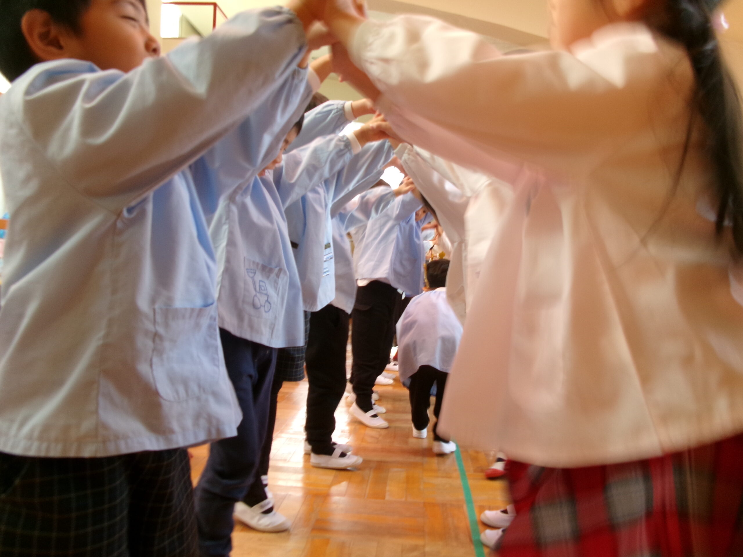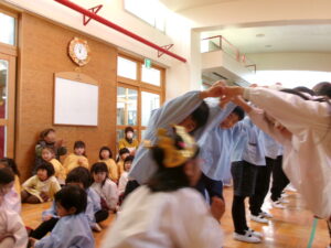 年長さんのアーチをくぐり~