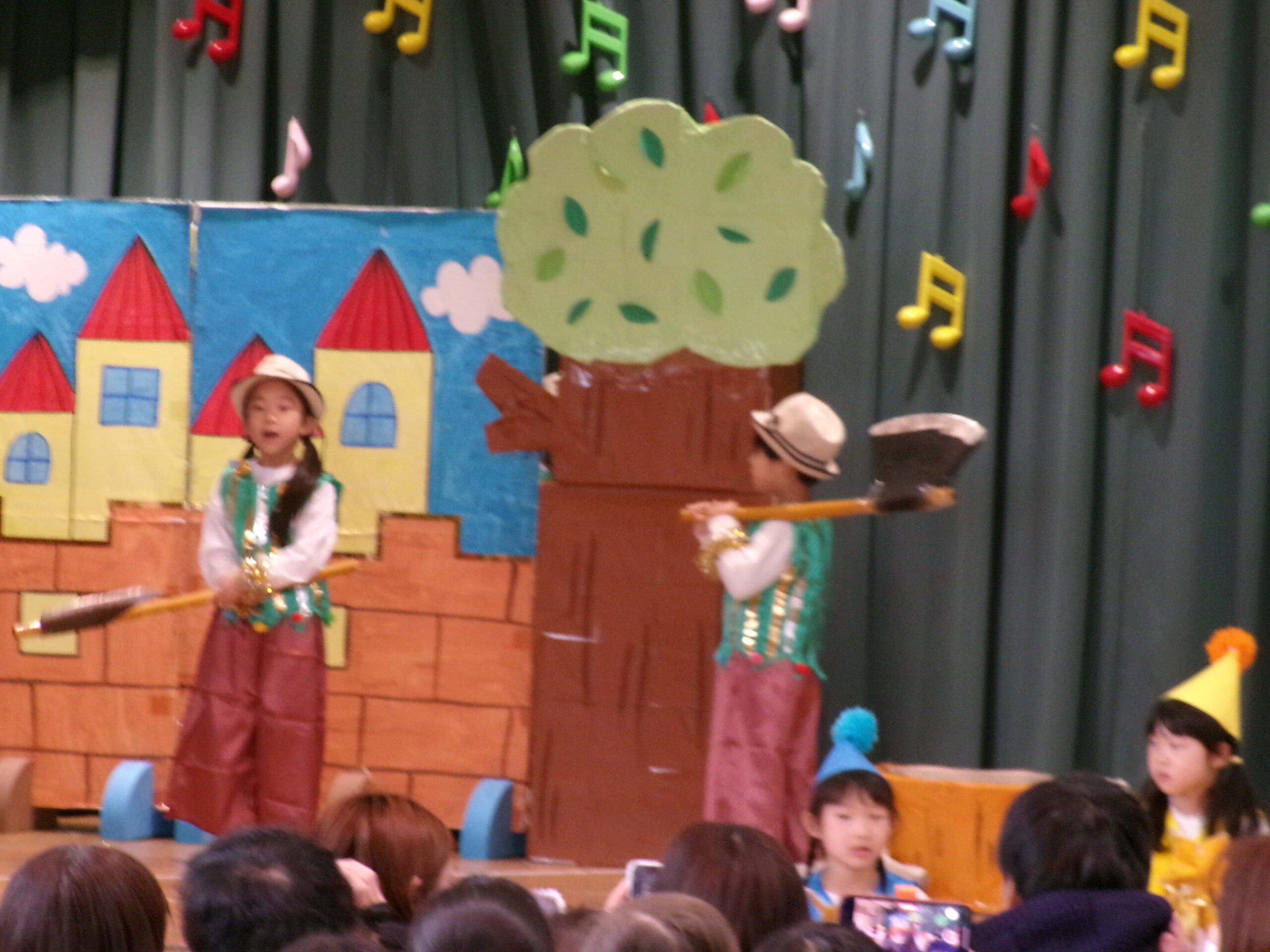 ウッドブロックで木を切る効果音を。。。♪