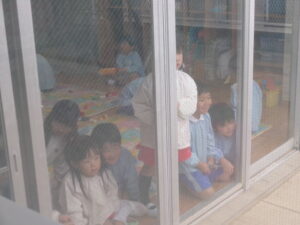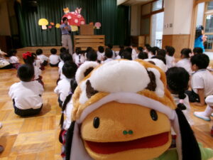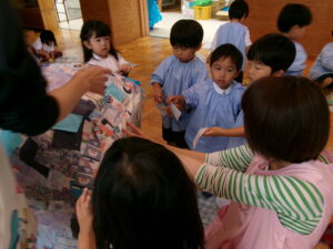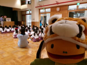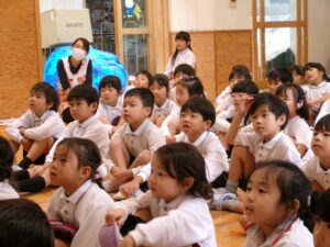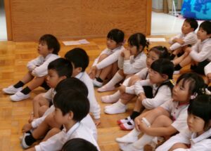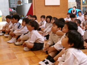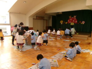 年長さんと年中さんが遊戯室に集まって~