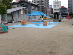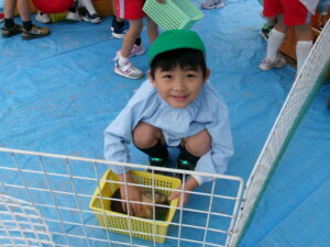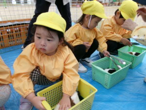 園庭では、年少さんと満3歳児・とり組さんが