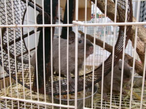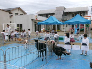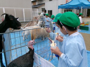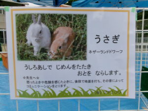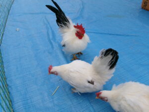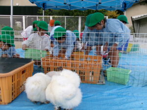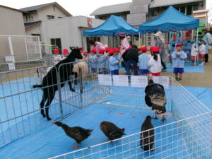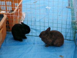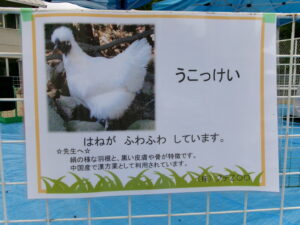 モルモット、ウサギ、チャボ、ウコッケイのサークルに