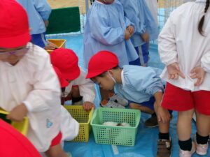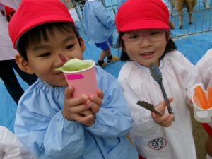 そして、エサやり中の年長さん。。。