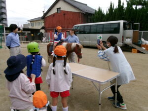 乗馬を終えた年長さんが