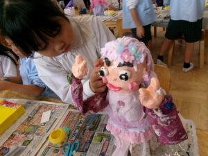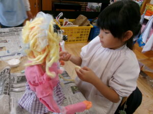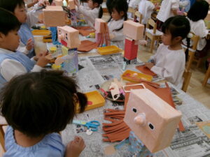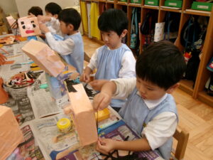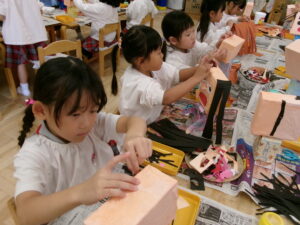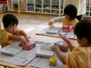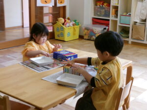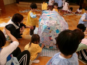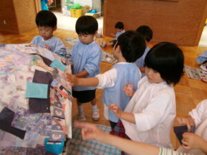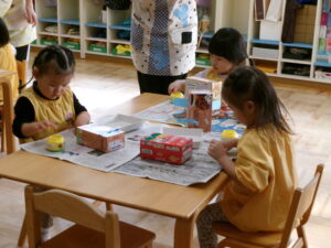 お遊戯室で共同作業中の