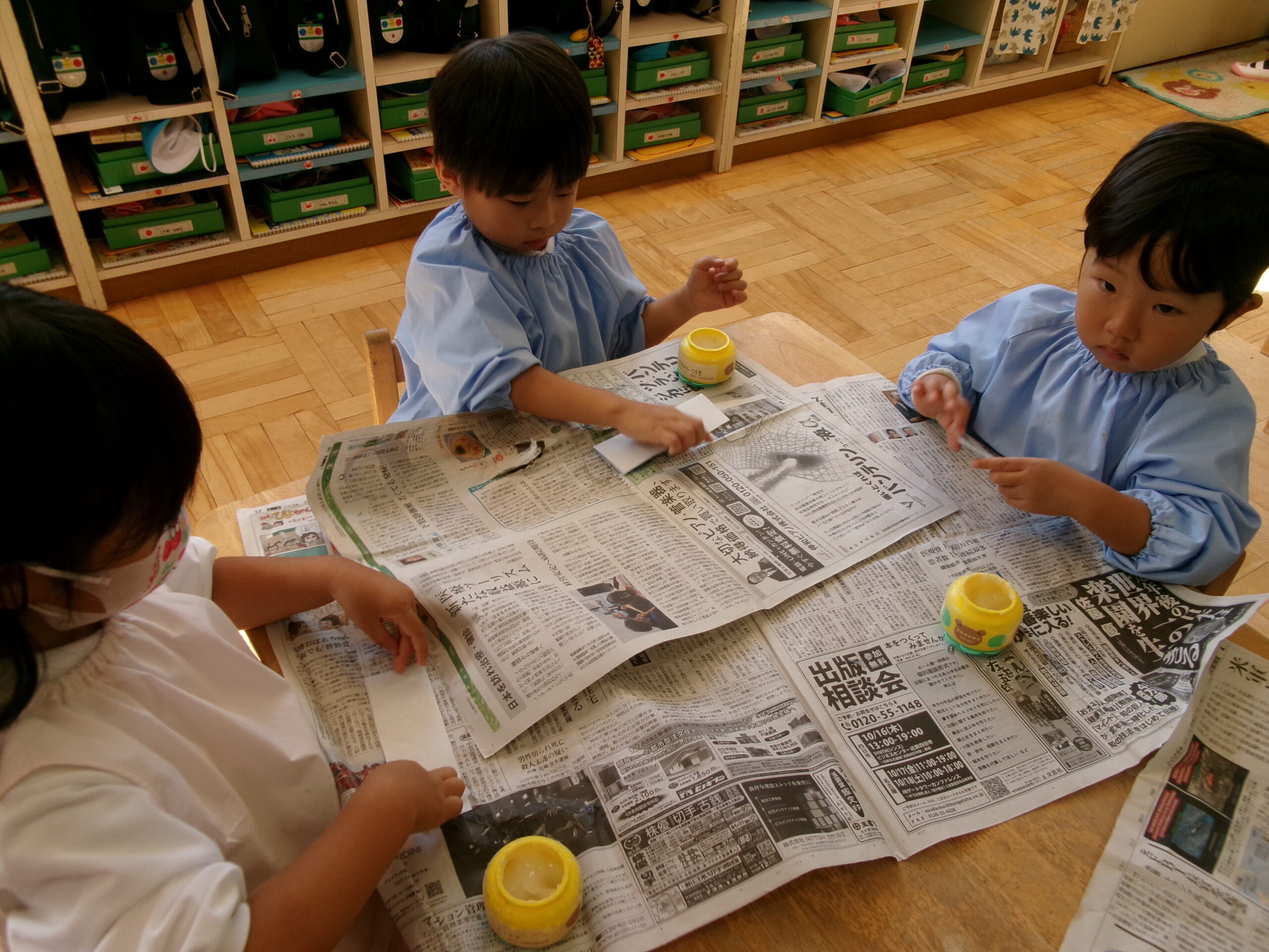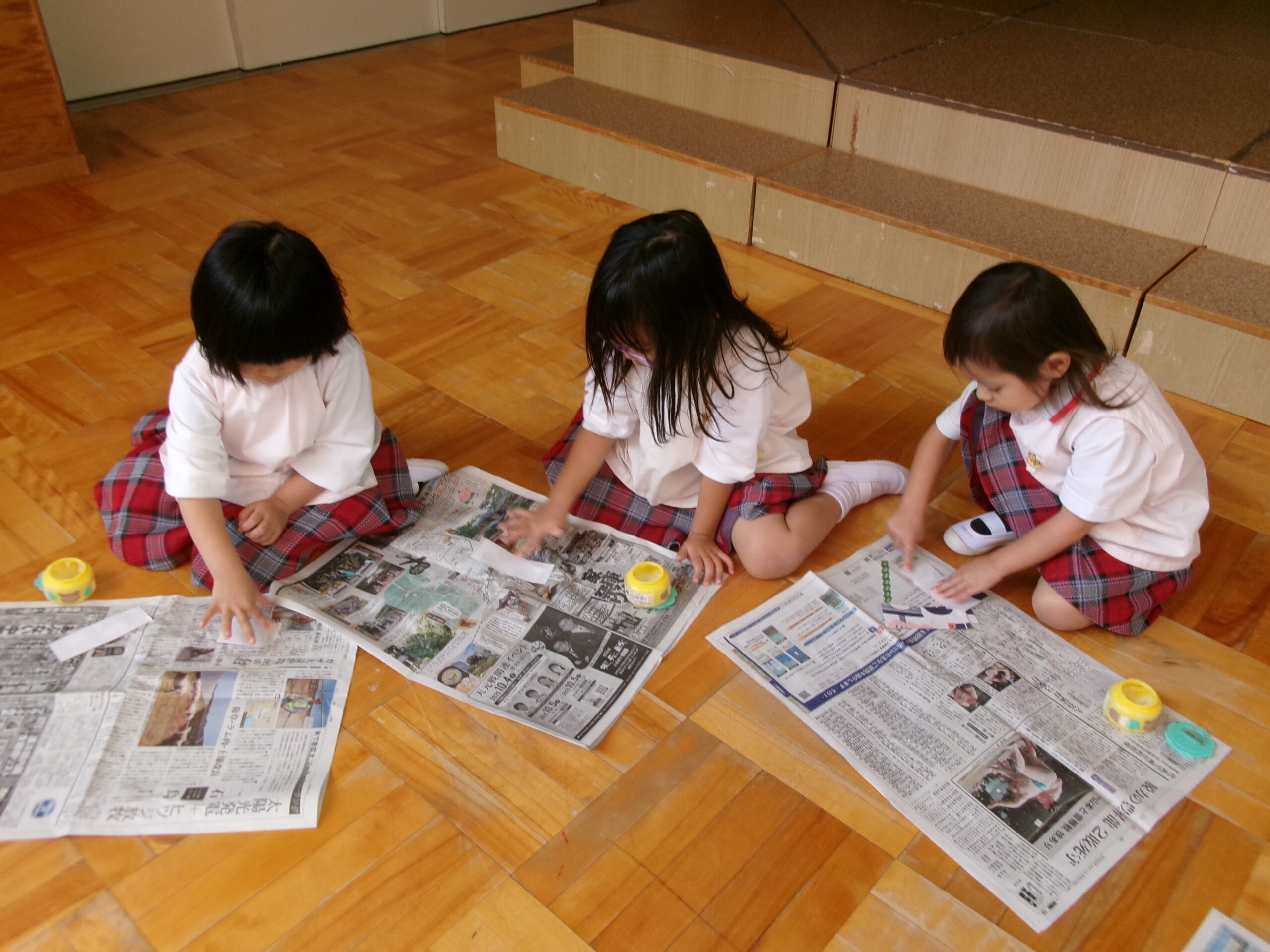 お遊戯室で共同作業中の