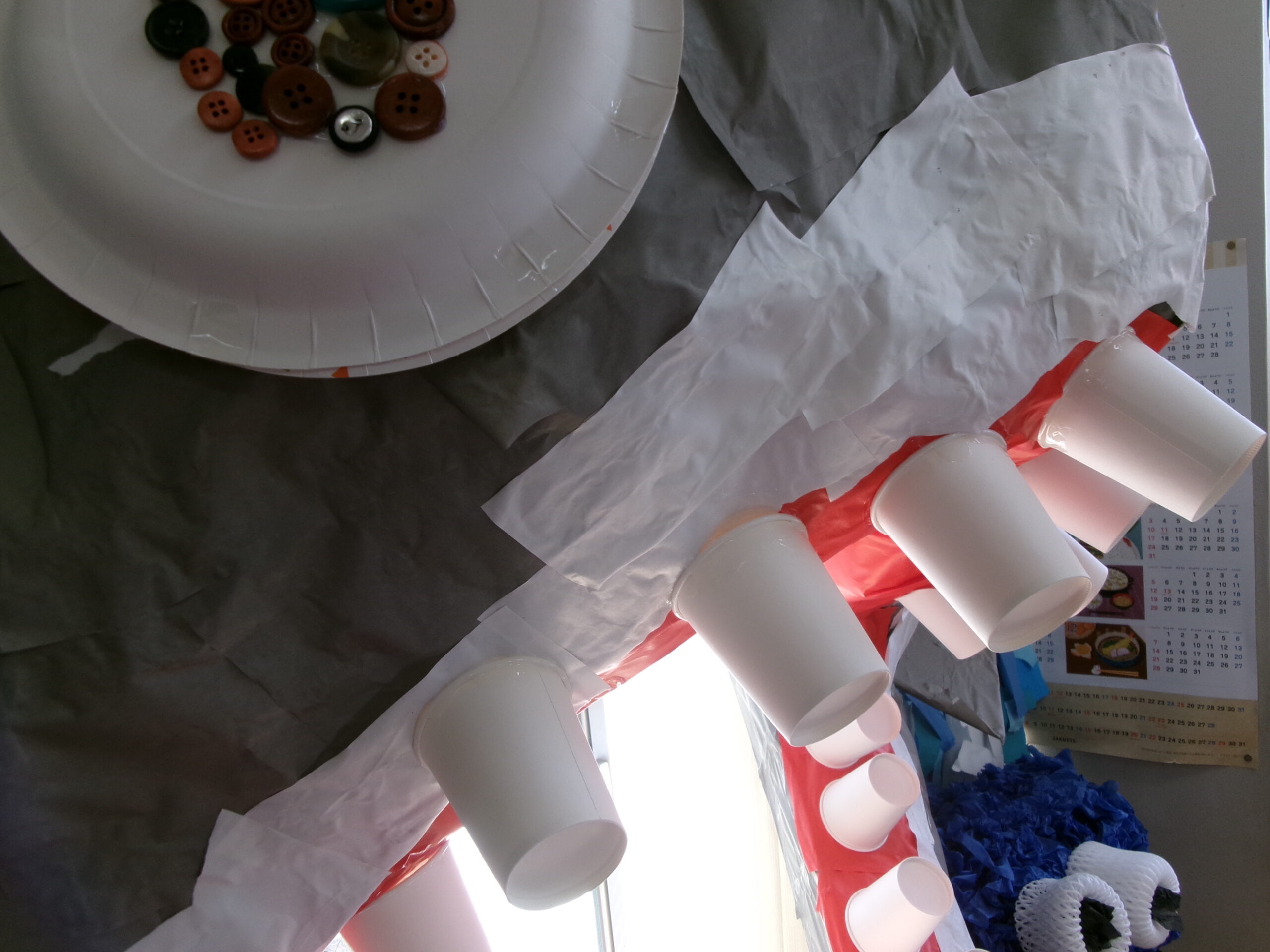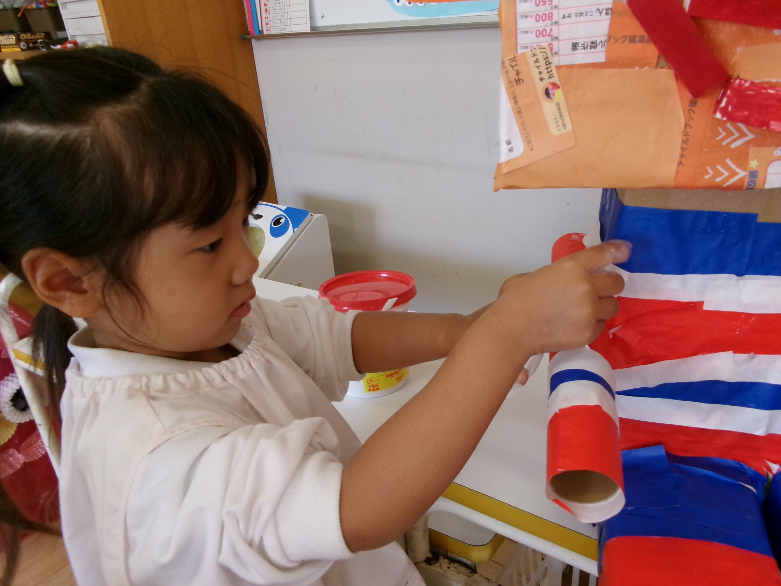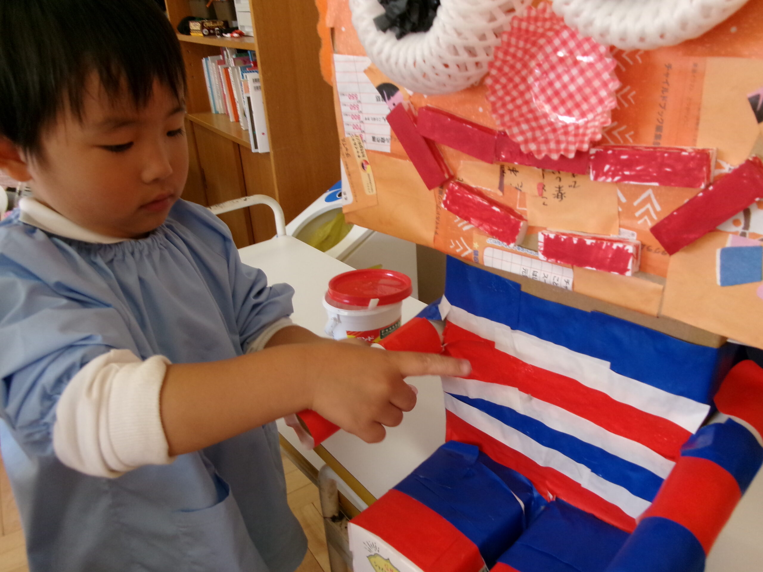 キラキラ折り紙を貼っているようです