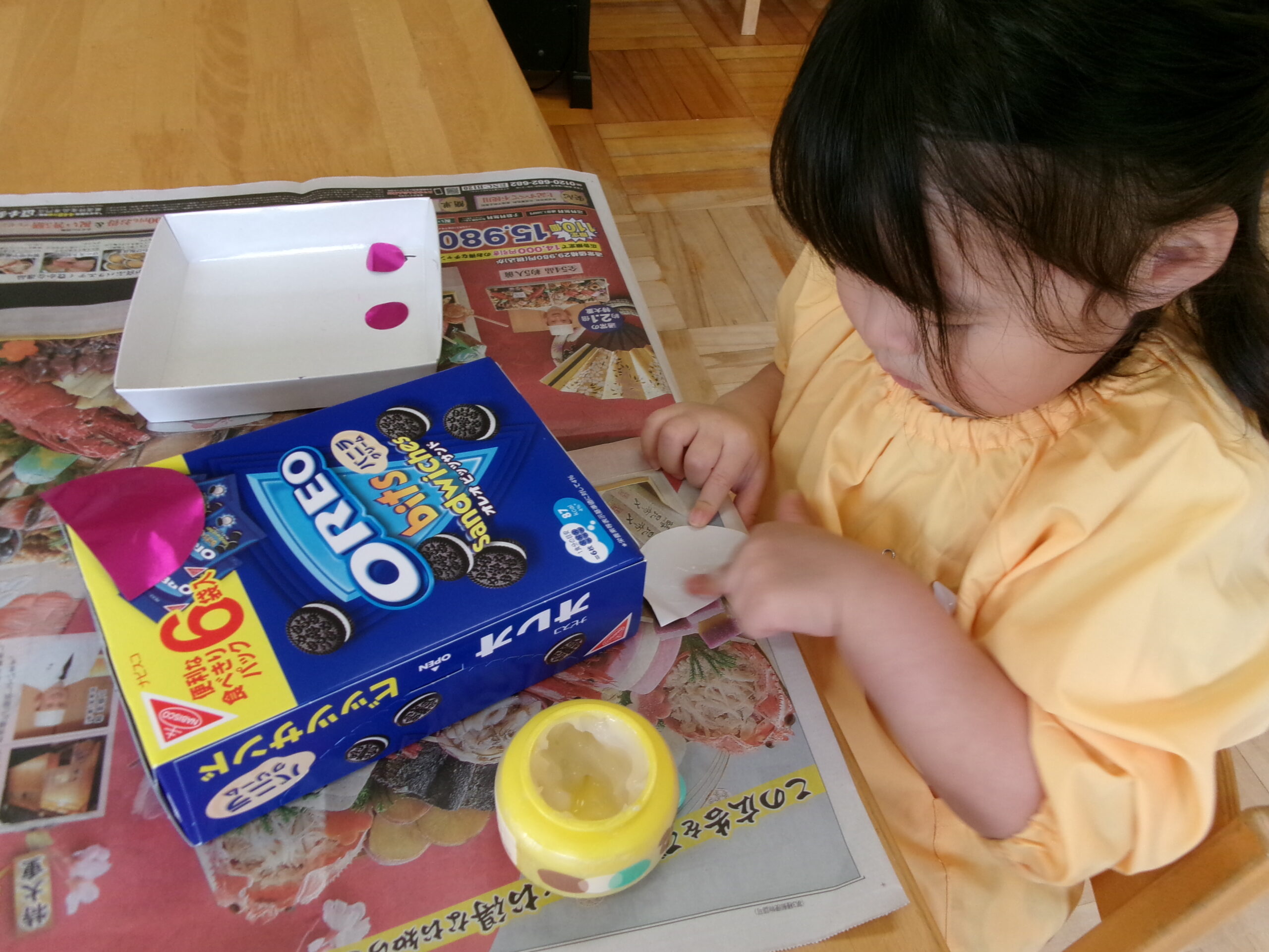 お菓子の空き箱に、